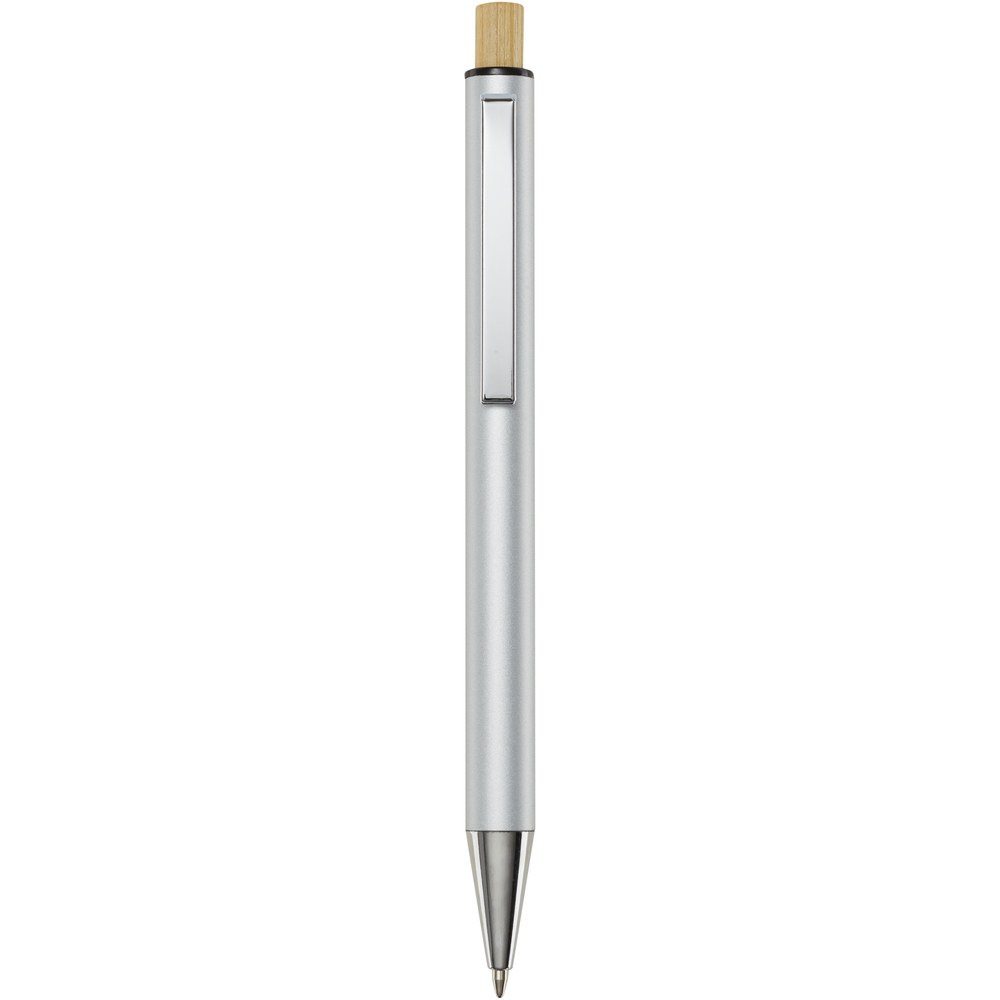 The Cyrus ballpoint pen is made from recycled aluminium, which requires less energy than producing aluminium from raw materials. It also reduces the amount of waste in landfills and helps to conserve natural resources aiming to reduce greenhouse emissions. The push button is made of bamboo. Ink colour: Black. Writing length: 800 metres. Nib size: 1.00 mm.