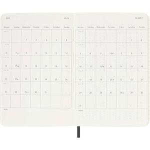 Dated from January to December 2026, the Moleskine soft cover 12-month weekly pocket size planner shows the whole week at a glance, while also providing yearly and monthly snapshot pages for a broader overview of the year, followed by pages for travel planning, ideas and goals. The days of each week are shown on one side opposite a ruled page for tasks and notes. Features ivory-coloured acid-free paper, a black elastic closure, a page ribbon marker, a colour coordinated expandable inner pocket, and stickers for personal customisation, as well as year stickers for the spine.